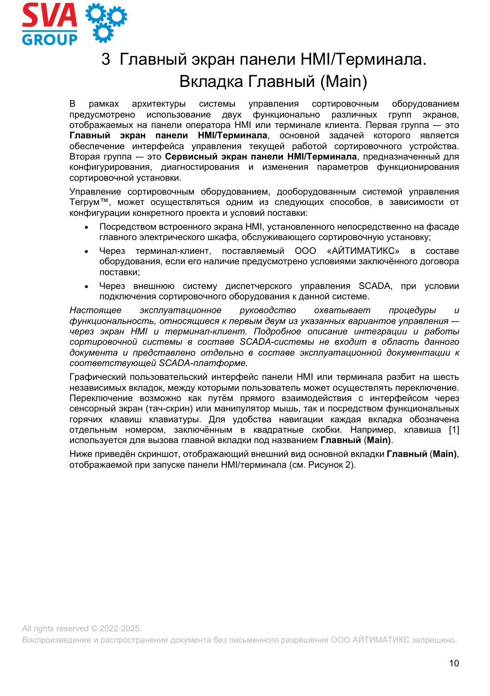 Настоящее руководство по эксплуатации разработано с целью обеспечить простоту и доступность обучения для всех категорий персонала, эксплуатирующего и обслуживающего сортировочное оборудование.